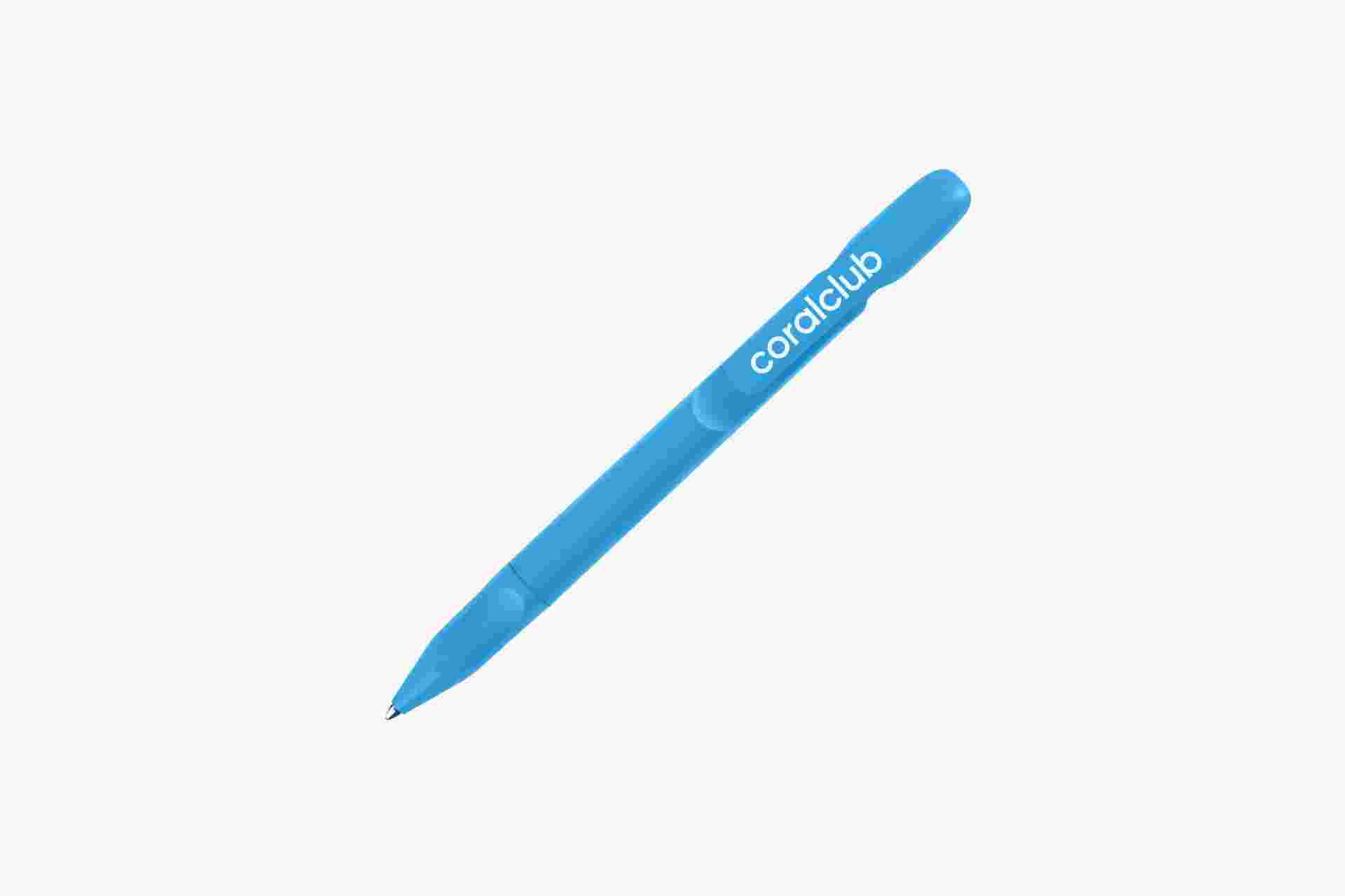 Taaskasutatud plastist valmistatud Coral Clubi pastapliiats, helesinine